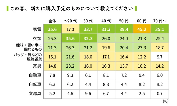 この春、購入予定のもの1位は「家電」、2位は「衣類」