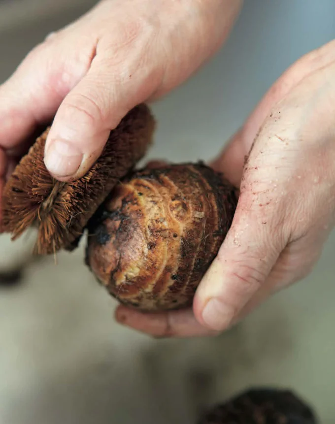 里いもやごぼうなど泥つきの野菜もたわしでよく洗って皮ごと食べる。野菜用のたわしを用意しておくと便利。