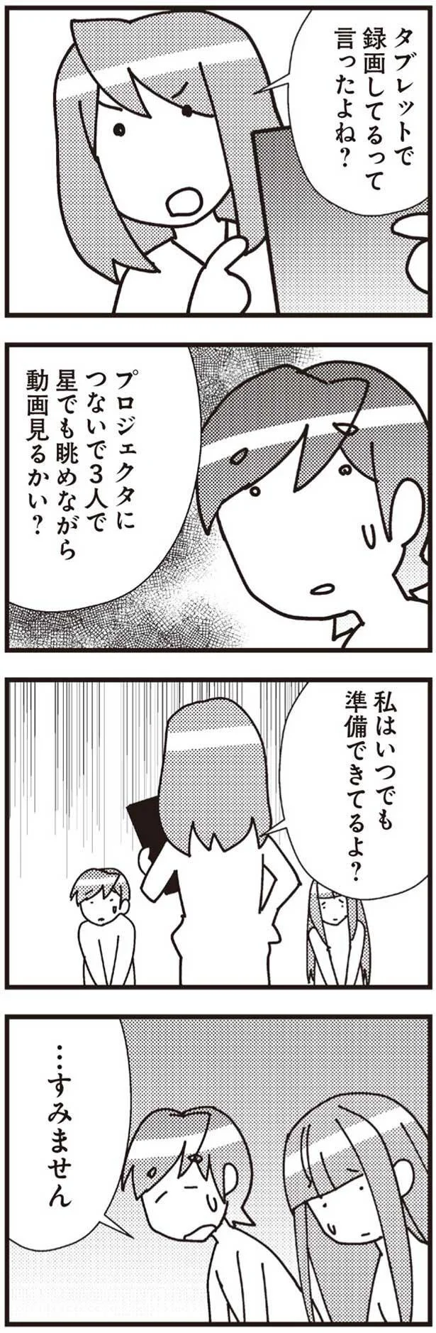 クローゼットの中で我慢していた分、怒りも最高潮のリナさんでしたが、真っ裸のまま「セックスはしてない」「ふざけてただけ」など、下手な言い訳をする夫に呆れます。決定的な証拠を目の前にして、いよいよ何もいいかえせなくなった夫と浮気相手はただうなだれるのでした。