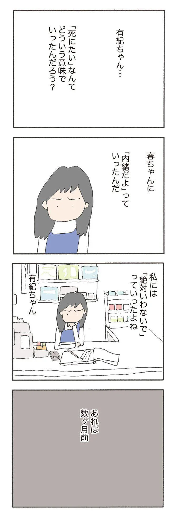なんでも話せる友達だと思っていたのに…、私たち何も知らなかったよ。