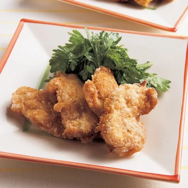 カツ用の豚肉がふんわりとした口当たりの竜田揚げに大変身。そのまま食べても、大根おろしを使ってさっぱりと食べてもいいですね。