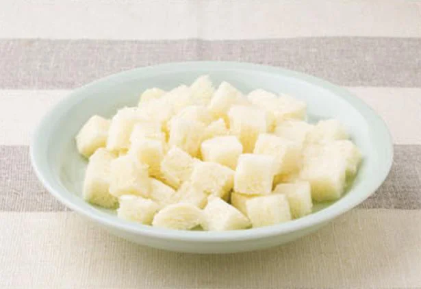 パンがゆにせずそのままでも食べられるようになります。最初は角切りから始め、慣れたら少しずつスティック状にしていきます。