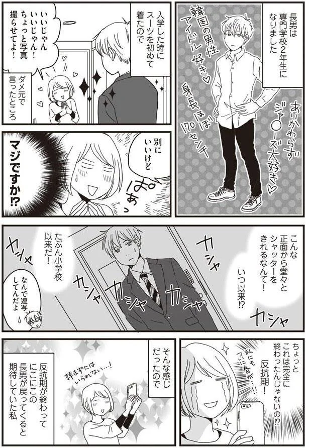 息子が写真を撮らせてくれるなんて!反抗期の終わりを予感する母/ナイフみたいにとがってら4(1)