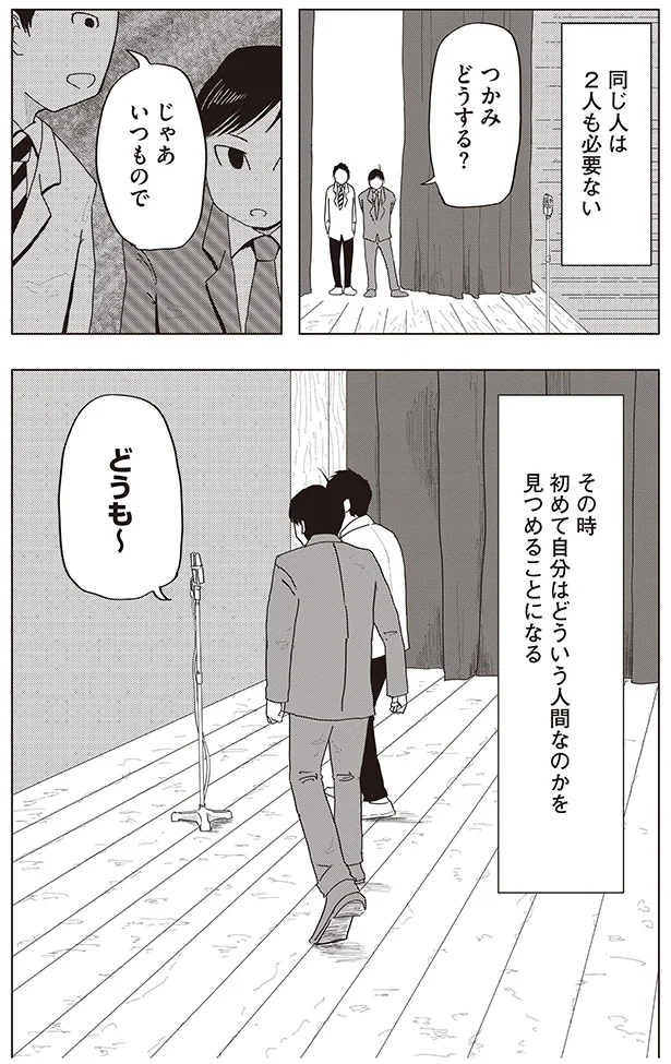 コントトリオ「ニュークレープ」のリーダーであるナターシャさんが描くのは、くすぶる芸人が死を意識した経験をきっかけに、芸人を続けるかやめるか葛藤する姿をリアルに描く等身大の半自伝的コミックです。