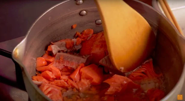 鮭を潰しながら煮る