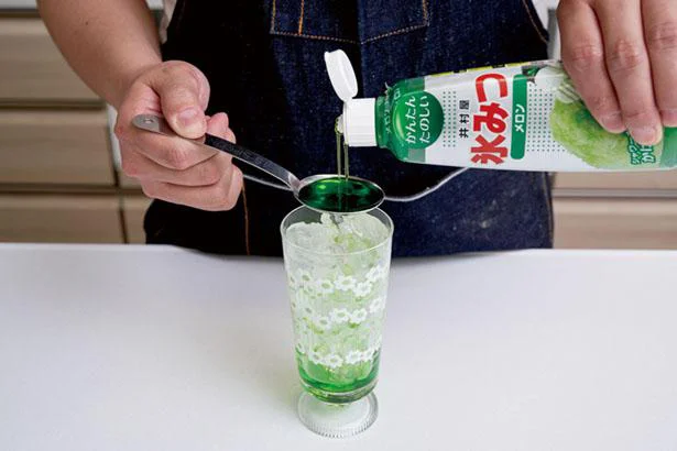 1.氷を入れたグラスに、氷みつを大さじ2杯入れる。