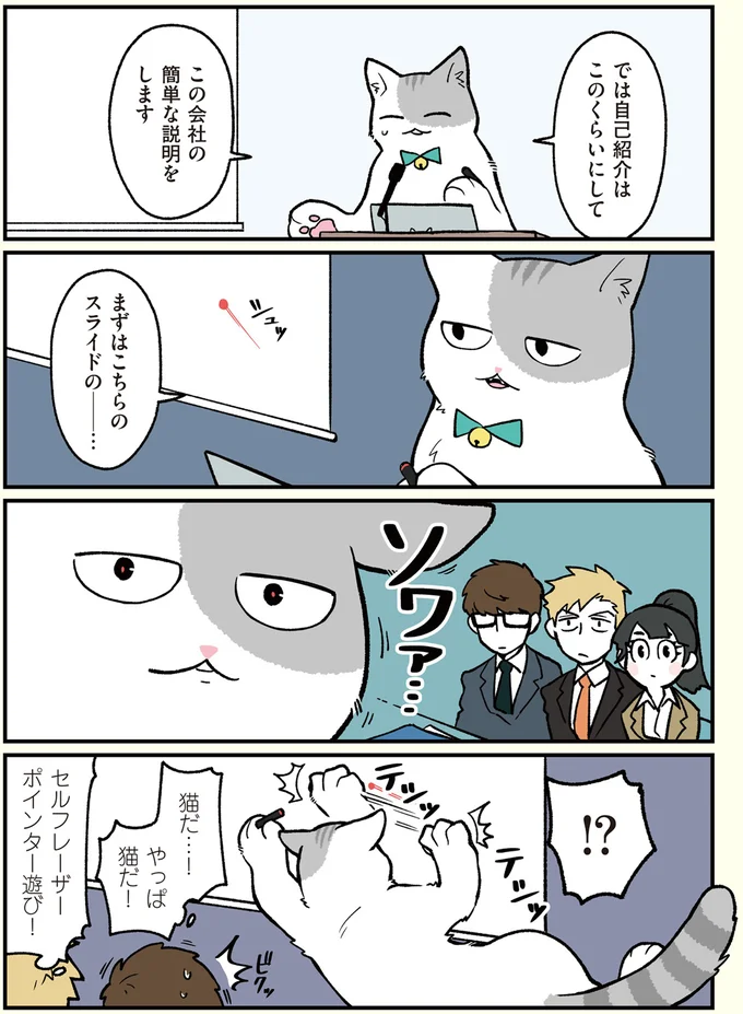 新入社員も大喝采! 猫になった社員のアクロバットがスゴい/ブラック企業の社員が猫になって人生が変わった話2(モフ田くんの場合)(1)