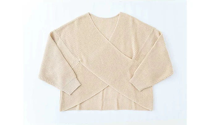ニットはタイトなほうが締まって見えると思いきや、実は少しだけゆとりのあるサイズ感が大事。体と服の間に空気が入るイメージで、これが細く見せるための大きなポイントに。
