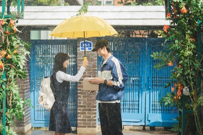 雨に打たれるソンジェに傘を差し出すソル