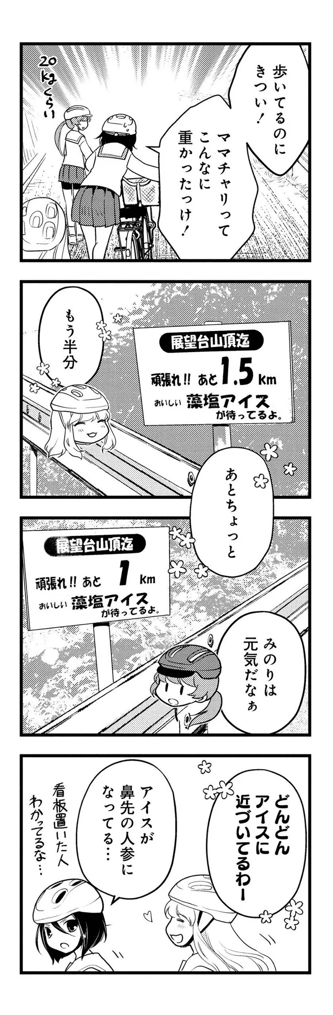 お昼を食べに「ちょっとそこまで」と誘われた先が海を渡った隣の島だったり、名物ジェラートを求めてママチャリで展望台を目指したり…ポタ部のみんなと過ごすうちに、ななみは自転車の楽しさにどんどんハマっていきます…!