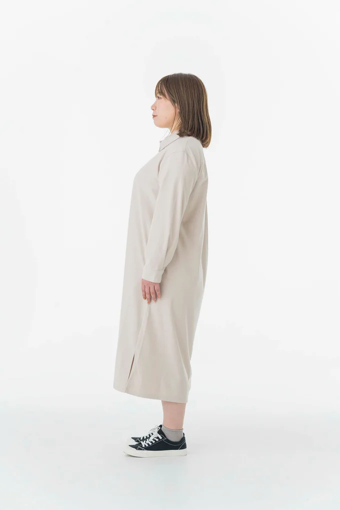 この画像のワンピースは、上半身から下半身にかけてまっすぐ落ちる(すそが広がっていない)デザイン。