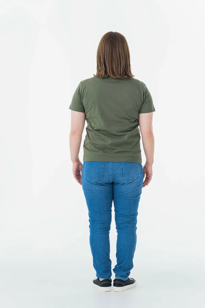 さらにトップスを体に張り付かないタイプのドルマンスリーブTシャツにチェンジすれば、全身にゆとりが生まれて驚くほどの着やせ効果を発揮してくれます。