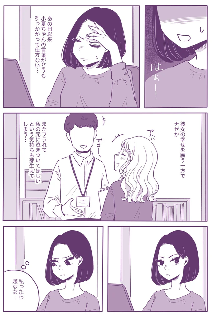 最近、5年付き合った末に気が合わないと振られてしまった小夏。美冬のおかげで未練はなかったものの、偶然元カレの「交際2年の彼女と結婚した」というSNS投稿を見てしまい怒りがMAXに!友人に話すとマッチングアプリをお勧めされて…。