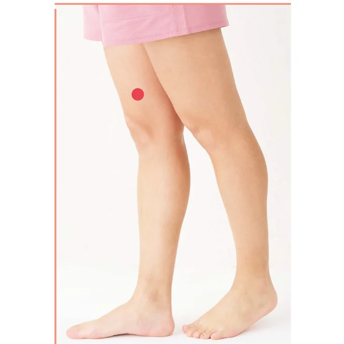 血海は、膝の皿の内側から上に2寸=指3本分上のところにある、婦人科系の不調に強いツボ。子宮筋腫がある人や生理の出血量が多い人は、生理中に押すと経血量が増える場合があるので生理時期は控えて。