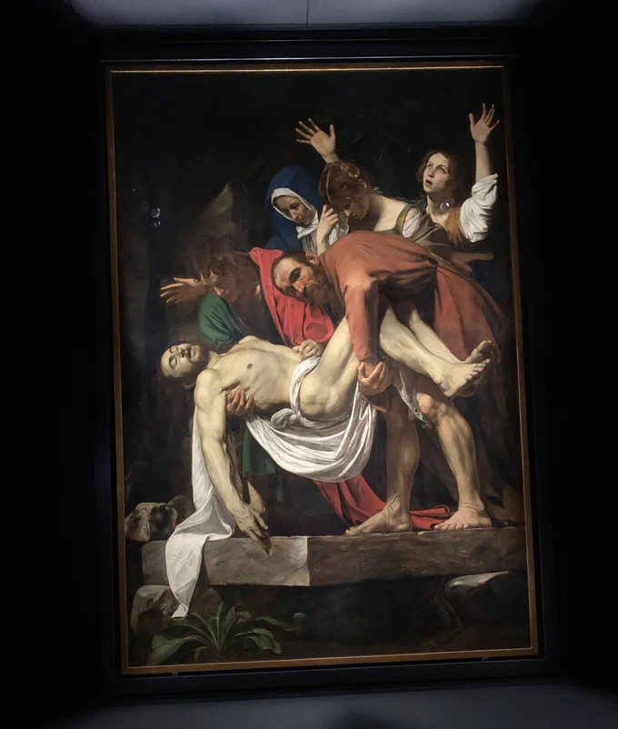 広場にそびえる2世紀の彫刻「ファルネーゼのアトラス」にはその筋肉や苦悶の表情の表現力に驚き、カラヴァッジョの「キリストの埋葬」は、明暗のコントラストに吸い込まれるよう。