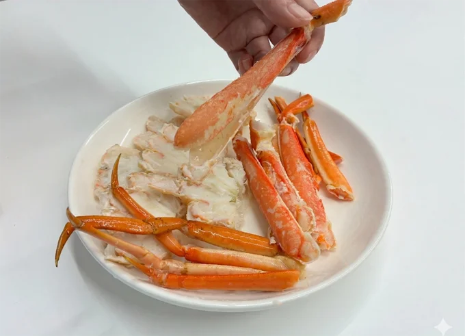実際に試食してみると、繊維一本一本がしっかりしていて、噛むたびにカニの甘みが口いっぱいに広がります。届いてから冷蔵庫で一晩解凍して試食しましたが、冷凍のカニにありがちなパサつきや水っぽさはありません。