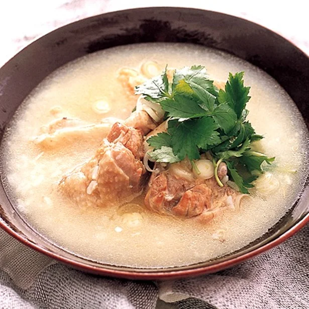 とりをまるまる1羽使う「サムゲタン」は韓国でも特に人気のスープ。本格的なサムゲタンを作るのはちょっと大変なので、お鍋用のぶつ切り肉でチャレンジしてみましょう。辛めに味つけした薬味をのせて召し上がれ。