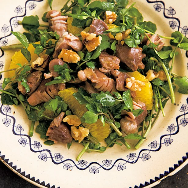 砂肝とクレソン、オレンジのサラダ