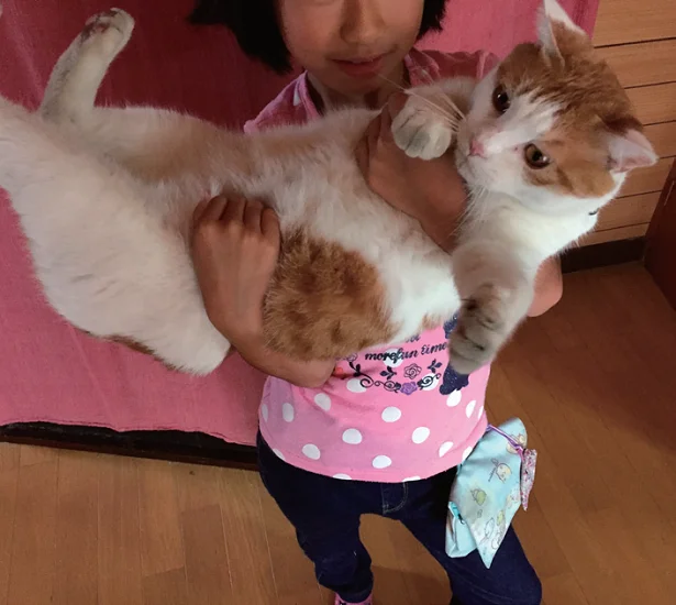 「子どもが抱えているため、写真ではずり落ちそうに見えますが、実際は驚くほどすんなりと捕獲させてくれます。もしかしたら、観念しているのかもしれません(笑)」