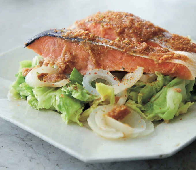 鮭とキャベツのごまみそ蒸し