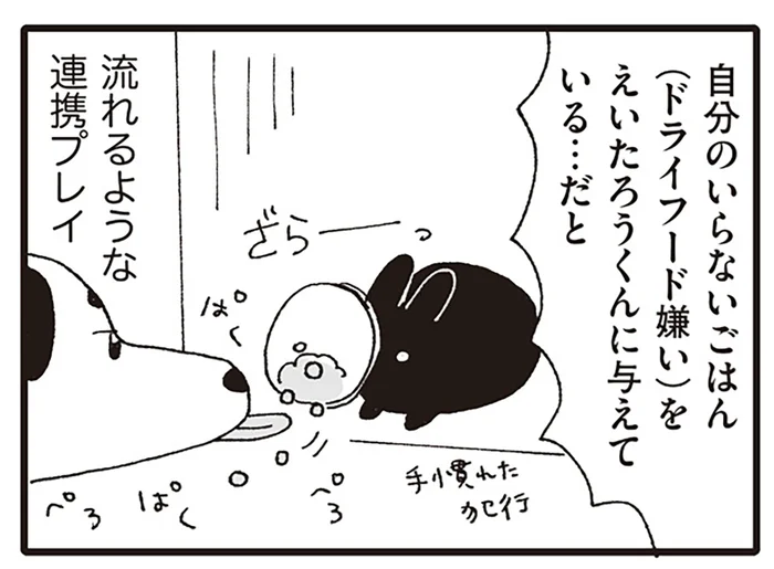 流れるような連携プレイ! 動物病院の院内犬と院内ウサギの内緒の食事事情/いぬねこ動物病院日記(7)