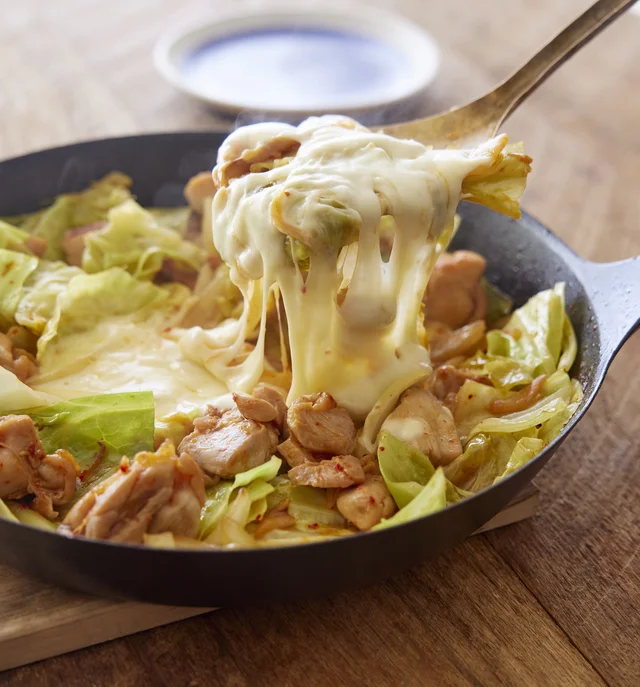 甘みが増したこんがりキャベツ&とり肉は相性抜群!「とりももとキャベツのバター焼き煮込み」