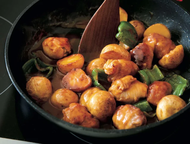 丸めた豚こま&新じゃが入りで食べごたえ満点!「新じゃが酢豚」