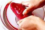 土など汚れがついている場合は、指でこすって水洗いを。最近はきれいに洗って売られているものが多いので、たわしでゴシゴシ洗う必要はありません。また、力強くこすりすぎると赤い薄い皮が破れ、皮つきのまま調理する際、仕上りが美しくないので注意して。