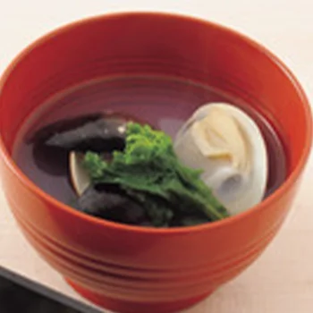 鍋に水4カップ、はまぐりを入れて火にかけ、沸騰したらアクを取る。はまぐりの口があいたら弱火にし、酒大さじ2、しょうゆ小さじ1、塩少々で調味する。椀に盛り、三つ葉をのせる。