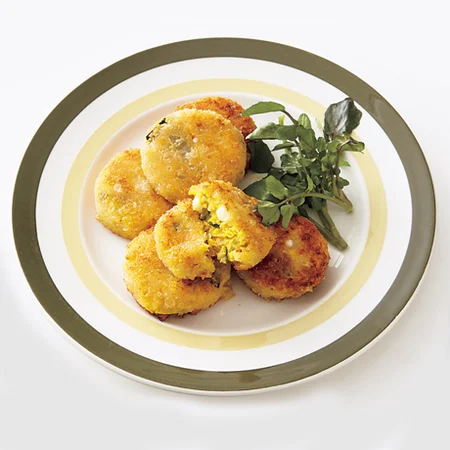 フライパンに油大さじ4を熱し、2を入れて2〜3分揚げ焼きにする。裏返してさらに2〜3分揚げ焼きにして取り出し、油をきる。器に盛って、好みでクレソンを添えても。