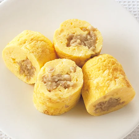 卵の中央に2を横長に広げ、「定番塩卵焼き」の作り方3と同様にする。