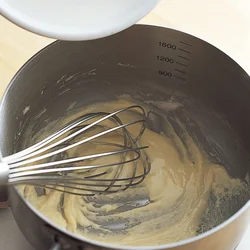 バターと小麦粉をクリーム状になるまで炒め、泡立て器で混ぜながら牛乳を加えると、なめらかなホワイトソースになる。