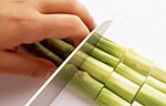 炒めものなどに使う場合に。細いため薄切りにすると歯ごたえがなくなるので、1cm幅くらいに切ります。