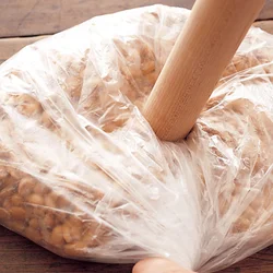 3のポリ袋に4を入れ、ポリ袋をもんで全体をしっかりと混ぜる。ふつうのみそよりややかためが目安だが、かたくてもみにくいときは、2のゆで汁を少し足して調整する。