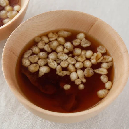 梅干しは種を除いて半分にちぎる。器に入れ、揚げ玉を等分に加える。