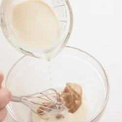 ボウルに練りごまを入れ、豆乳を少しずつ加えて溶き、添付のたれも加えて混ぜる。