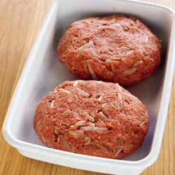 全体がなじんだら2等分し、小判形にまとめる。もやしが飛び出ないよう、表面をなめらかにするのがコツ。