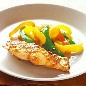 スナップえんどうは筋を除き、カラーピーマンは縦六つ〜八つ割りにする。さわらは塩、こしょう各少々をふる。みそバターのバターを耐熱容器に入れ、電子レンジで5秒ほど加熱し、残りの材料を加えて練り合わせる。
