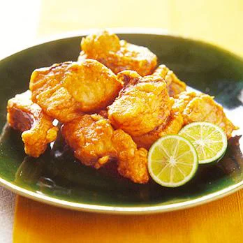 揚げ油を高温(180℃)に熱して2を入れ、火が通るまで3分ほどカラリと揚げる。器に盛り、半分に切ったすだちを添える。