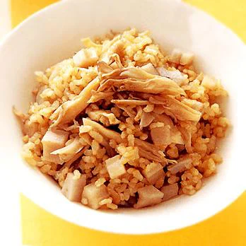 炊飯器に2を入れ、目盛りよりやや少なめの水、砕いたスープの素を加えて炊く。蒸らしてから塩、こしょう各少々で味をととのえる。