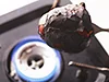 ピーマンはへたにフォークを刺してじか火にかざし、表面が真っ黒になるまで、回しながら約3分強火で焼き(または焼き網にのせて転がしながら焼く)、あつあつを冷水にとって焦げた皮をむく。