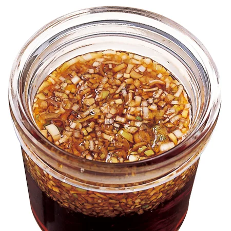 長ねぎのみじん切り、酢、砂糖、しょうゆを混ぜ合わせる。煮沸消毒した瓶に入れ、冷蔵庫で約1週間保存可能。
