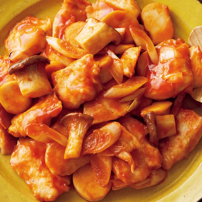 とり肉とエリンギのケチャ炒め