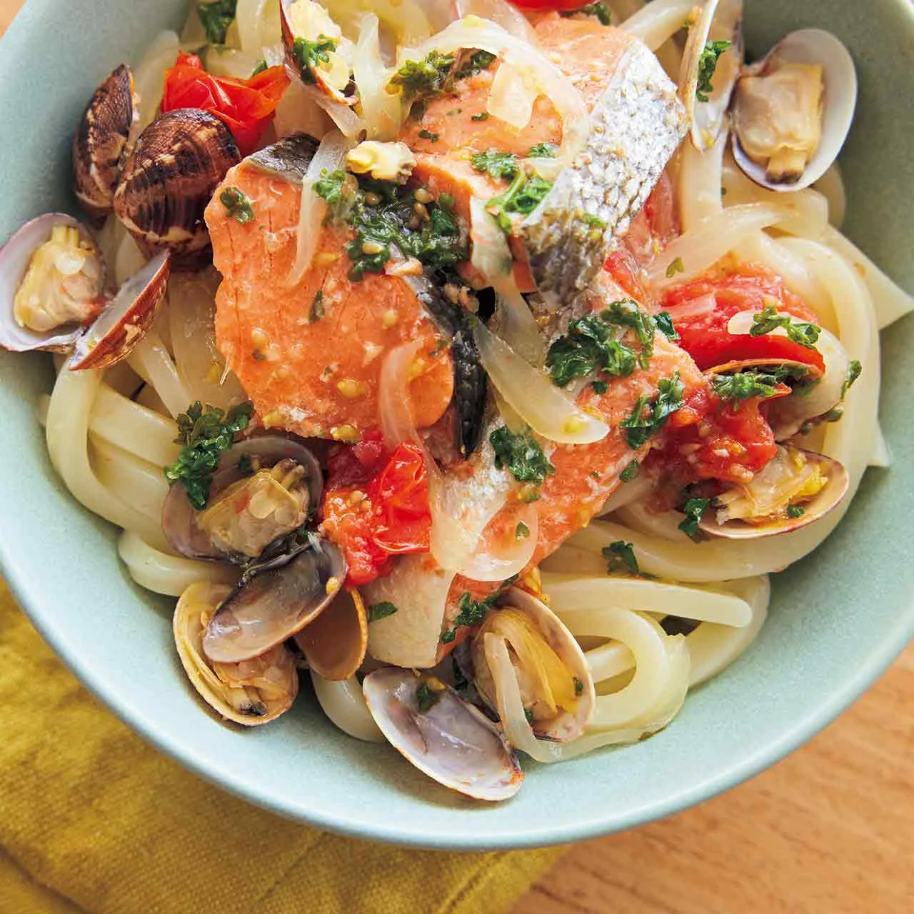 鮭とあさりのアクアパッツァ風ぶっかけうどん