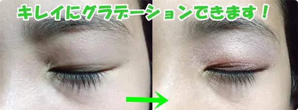 濃い色はアイラインとしても使えそうなくらいしっかりとしているので、これ1枚でベースからアイラインまで完成させられます。