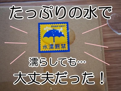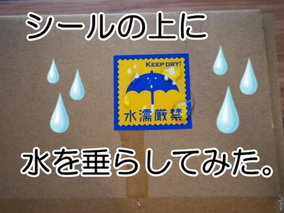 「ケアマークシール」を水に濡らして実験中!