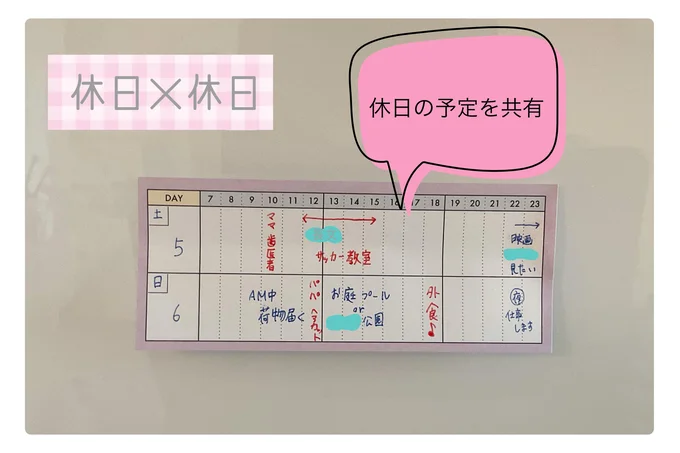 事前に決まっている予定と自分がやりたいことを書き、帰宅した夫が休日の予定を確認できるようにしてみました。
