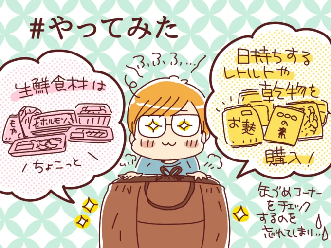 なので、まずは生鮮食品は「ちょっと足りないかな?」くらいの使いきれる量を買い(あったら良いかも?みたいなふんわりした考えで生鮮は買いこまない!)、疲れた日や生鮮食品が少ない日のためにレトルトや乾物、缶詰を多めに買う、というところを意識して買い物してみました♪