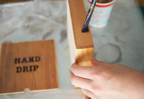 まずコーヒーフィルターケースに水性ニスを塗ります。