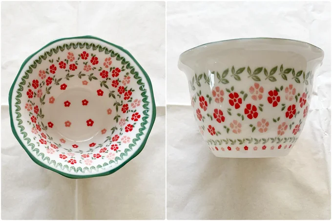 カラフルな小花柄が特徴的な食器も人気の一つ。小花とドット模様が全面に描かれる、センチュリーのポーランド風の食器です。